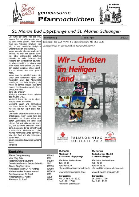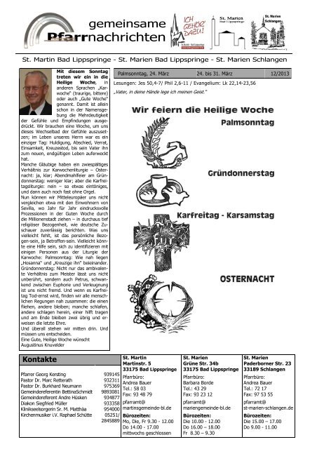 kontakte kath pfarrgemeinde st martin bad lippspringe