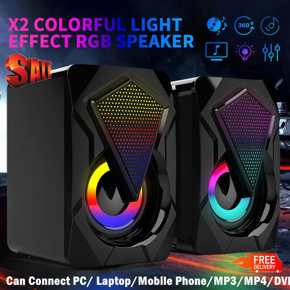 2 x speakers portable surround sound system led pc speakers gaming bass usb wired for desktop computer portable speakers aliexpress