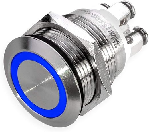 drucktaster klingeltaster led beleuchtung einbau 19mm edelstahl v2a flache tastflache wasserdicht schraubkontakte ac dc led blau amazon de auto motorrad