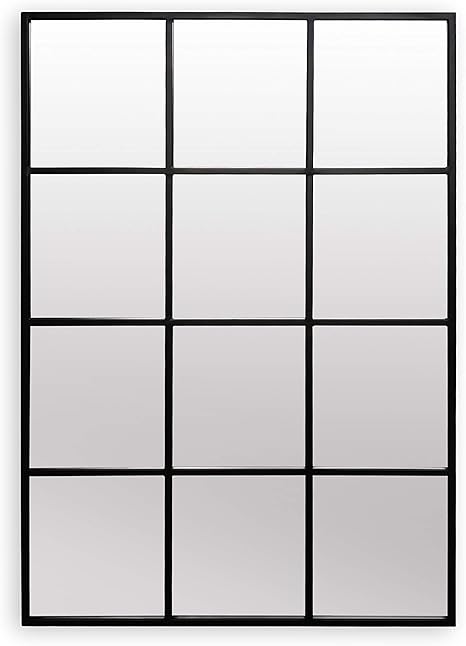 amazon de antic by casa chic schwarzer fenster spiegel 90 x 60 cm wandspiegel pulverbeschichteter metallrahmen schwarz