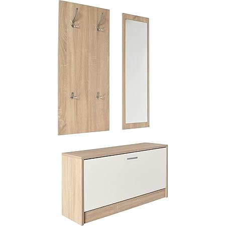 ts ideen 3er set wand garderobe wand spiegel schuhkipper schuhschrank sitzbank eiche hell amazon de kuche haushalt wohnen