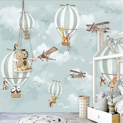 tapeten wandbild hintergrundbild fototapete grosse 3d wallpaper mural cartoon heissluftballon flugzeug tier kinderzimmer hintergrund wandtapete fur wande 3 d 400 280 cm amazon de baumarkt