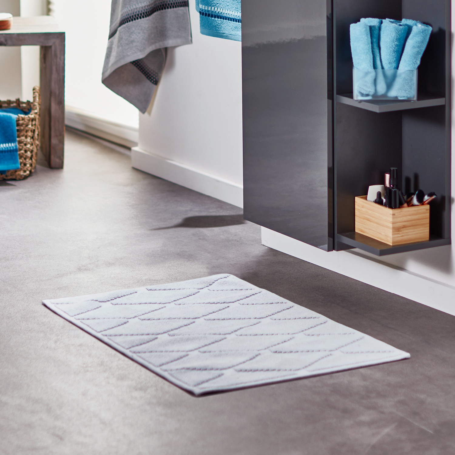 make your bathroom cosier than ever with this bathmat made from 100 polyester fibres that are woven into a non slip bac badteppich teppich moderne badematten