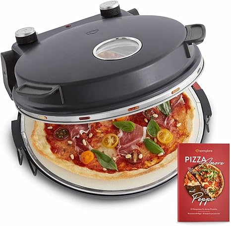 amazon de pizzaofen peppo 1200 w pizzamaker minibackofen elektrisch fur pizza brot 350 c timer signallampe inkl emaille bratpfanne 2 grossen pizzawendern gratis rezept pdf anthrazit