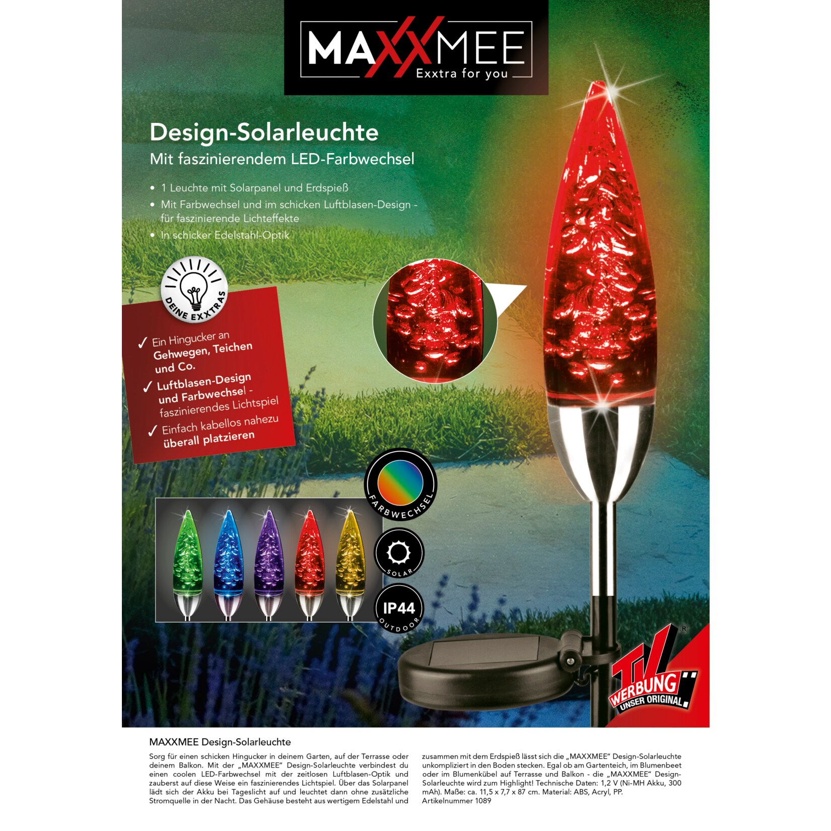 maxxmee design solarleuchte mit farbwechsel 1 2v mit erdspiess online kaufen bei netto